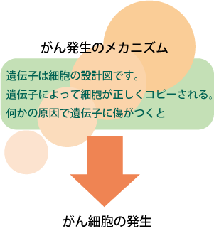 古い細胞の遺伝子を書き写し、それにしたがって新たに細胞が作られます。所謂古い細胞をコピーするわけですが、発癌物質が原因で遺伝子に傷がつくと、コピーミスが起きてしまうことがあります。