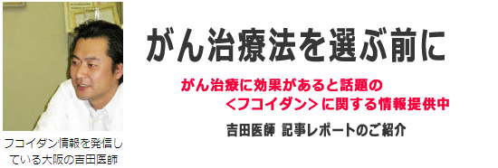 がん治療におけるフコイダン療法での第一人者で吉田年宏先生が院長としてフコイダン無料相談会の実施やダッシュ療法に関する数多くのレポートや小冊子等を公開している。